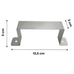 Fabricada em aço Galvalume branco de 0,43 mm, a abraçadeira retangular corte 28 possui 13,5 cm de largura, 3 cm de comprimento e 5 cm de altura.