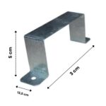 Fabricada em aço zincado natural de 0,43 mm, a abraçadeira retangular corte 28 possui 13,5 cm de largura, 3 cm de comprimento e 5 cm de altura.