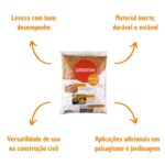 É importante destacar que o saco de argila de 22Kg da Cinexpan é impermeável e contém grãos de 15 a 22 mm de diâmetro.
