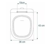 Fabricado em polipropileno, este assento para vaso tem 43 cm de comprimento, 36 cm de largura e a distância entre os furos é de 15 cm.