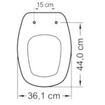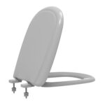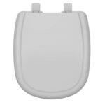 Fabricado em polipropileno, este assento para vaso cinza tem 44 cm de comprimento, 36,1 cm de largura e a distância entre os furos é de 15 cm.
