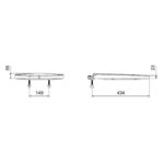 O Assento Sanitário Convencional Zip Plus da Roca tem 42,7 cm de comprimento, 37,1 cm de largura e a distância entre os furos é de 14,9 cm.