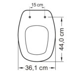 O Assento Sanitário Sabatini da Tupan é produzido em polipropileno, apresenta 46,2 cm de comprimento, 36,9 cm de largura e a distância entre os furos é de 15 cm.