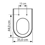 O Assento Sanitário Vesúvio da Tupan é produzido em polipropileno, apresenta 44 cm de comprimento, 35 cm de largura e a distância entre os furos é de 15 cm.