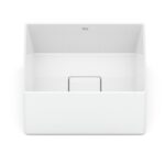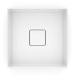 Com um formato quadrado, essa cuba de louça apresenta 30 cm de largura, 30 cm de comprimento e 12,5 cm de altura.