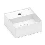 Com um formato quadrado, essa cuba de louça apresenta 30 cm de largura, 30 cm de comprimento e 12,5 cm de altura.