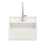Outro fator de destaque da Cuba T7 da linha Terra desenvolvida pela Roca é a sua válvula integrada de mesma cor e material da peça, tornando o produto ainda mais prático, funcional e moderno.