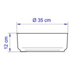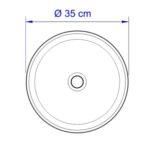 Com um formato redondo, essa cuba de louça apresenta 35 cm de largura, 35 cm de comprimento e 12 cm de altura.