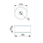 Com um formato redondo, essa cuba de louça apresenta 30 cm de largura, 30 cm de comprimento e 12,5 cm de altura.