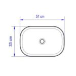 Com um formato retangular, essa cuba de louça apresenta 52 cm de comprimento, 34 cm de profundidade e 11 cm de altura.