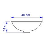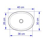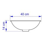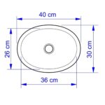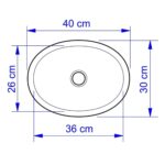 Produzida em louça, essa cuba oval possui 40 cm de comprimento, 30 cm de largura e 14 cm de altura.
