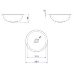 Essa cuba redonda para banheiro é produzida em louça na cor branca e possui 36 cm de comprimento, 36 cm de largura e 14,5cm de altura.