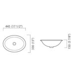 Produzida em louça, essa cuba oval possui 44,5 cm de comprimento, 33 cm de largura e 15 cm de altura.