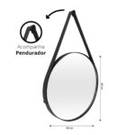 Com uma estrutura de aço na cor preta e uma alça em couro legítimo, este espelho redondo apresenta ampla durabilidade e garante uma ótima sustentação, diminuindo de forma eficiente o risco de acidentes.