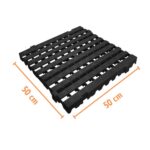 Entre os muitos benefícios deste piso de plástico pesado 50x50x4,5 cm, podemos destacar a sua superfície antiderrapante, a facilidade para escoar líquidos e a redução de até 90% de atrito com o solo.