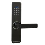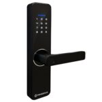 Com um design elegante na cor preta, essa fechadura conta com um teclado touch screen intuitivo que permite o acesso através de senhas, biometria ou tags de proximidade.