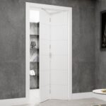 Por ser dividida em duas partes, seu sistema de abertura otimiza a mobilidade em ambientes com pouco espaço útil, sendo muito utilizada em armários, closets e banheiros.