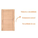 Dessa forma, a porta é fabricada em madeira maciça de eucalipto, conhecida por garantir máxima robustez e resistência, além de promover um ótimo isolamento térmico ao ambiente.