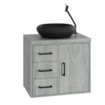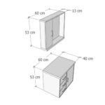 Fabricado em MDF, esse gabinete de banheiro possui 60 cm de largura, 40 cm de profundidade e 52 cm de altura.