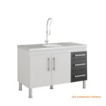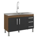 Devido a sua estrutura, este gabinete é ideal para pias de cozinha de 1,20 M fabricadas em alumínio, mármore ou materiais sintéticos.