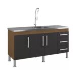 Devido a sua estrutura, este balcão é ideal para pias de cozinha de 1,50  metros fabricadas em alumínio, mármore ou materiais sintéticos.