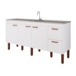 Outro fator relevante é o fato de já ser vendido montado, ou seja, basta instalar os puxadores, pés e sobrepor a pia (que não acompanha o produto).