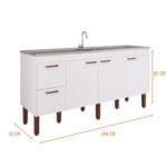 Devido a sua estrutura, este balcão é ideal para pias de cozinha de 2,00 metros fabricadas em alumínio, mármore ou materiais sintéticos.