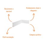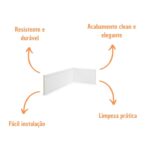 Vale destacar também que esse rodapé branco proporciona um acabamento slim de alto padrão para ambientes internos e não requer pintura. Seu material é resistente à água e possui um design inteligente que permite ocultar fios e cabos.