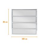 Essa janela basculante horizontal é reforçada por conta do vidro mini boreal. Com isso, você pode adquirir a janela nas seguintes dimensões: