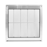 Essa janela projetante é do tipo frontal, que contribui para a projeção de luz e ventilação para o local. Acompanha vidro mini boreal na sua composição.