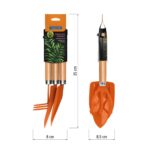 Os cabos em madeira oferecem pegada confortável e firme, contribuindo para melhor ergonomia e controle durante o uso. Com 42,5cm de comprimento, o conjunto proporciona alcance adequado para operações mais práticas, reduzindo o esforço e aumentando a eficiência nas atividades de jardinagem.