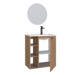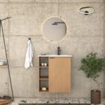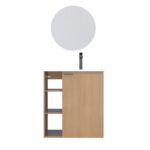Vale destacar que o gabinete Hortênsia com cuba e espelho ainda oferece um amplo espaço interno, pois a sua estrutura conta com 1 porta e 3 nichos, proporcionando uma ótima organização dos itens de higiene pessoal, toalhas e até produtos de limpeza.