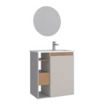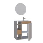 Vale destacar que o gabinete Lotus com cuba e espelho ainda oferece um amplo espaço interno, pois a sua estrutura conta com 1 porta e 3 nichos, proporcionando uma ótima organização dos itens de higiene pessoal, toalhas e até produtos de limpeza.