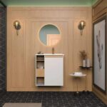 Além disso, o seu espelho traz um ar de requinte ao ambiente e transmite a sensação de amplitude, se tornando uma peça chave para ampliar espaços pequenos como toaletes e lavabos.