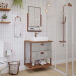 Ao mesmo tempo, a sua estrutura com duas gavetas com cpermite ao usuário organizar de forma adequada os seus itens de higiene pessoal e toalhas.