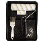 O Kit Pintura n° 25 com 5 peças da Compel inclui 1 bandeja, 2 rolos de lã sintética, 1 Pincel e 1 suporte para rolo, sendo uma ótima opção para realizar trabalhos de pintura com praticidade e eficiência.