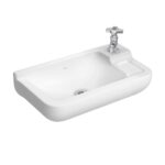 O lavatório suspenso Izy é ideal para banheiros menores, pois tem dimensões compactas e não precisa de uma bancada para ser utilizado.