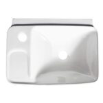 Esse lavatório branco possui 42 cm de comprimento, 31 cm de largura e 15 cm de altura.