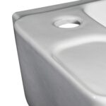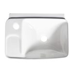 Esse lavatório branco possui 42 cm de comprimento, 31 cm de largura e 15 cm de altura.