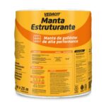 A manta estruturante de poliéster 16cm x 25m da Vedacit é utilizada como reforço em sistemas de impermeabilização, aumentando a resistência mecânica e a durabilidade das mantas líquidas e revestimentos impermeáveis.