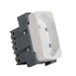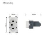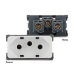 O funcionamento garante conexão firme do plugue, mantendo estabilidade elétrica durante a utilização. O sistema de aterramento contribui para segurança do usuário e dos equipamentos conectados. Os contatos internos foram projetados para desempenho contínuo. O módulo proporciona operação elétrica estável.