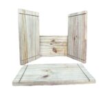 Sua estrutura é composta por madeira de pinus tratado. Além de proporcionar durabilidade ao projeto, esse material se destaca pela facilidade de corte e estabilidade.