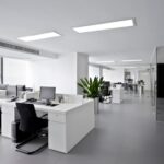 124,5x31cm – Opção retangular para corredores, escritórios e áreas maiores, com iluminação linear.