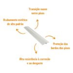 Com 3 metros de comprimento e 3 cm de largura, esse perfil tem como principal função, suavizar a diferença de altura entre dois pisos laminados.