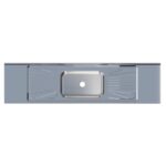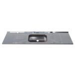Essa pia possui 2,00 metros de comprimento, 52 cm de largura e dispõe de uma cuba embutida de acabamento polido com 46x30x11cm.