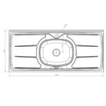 Essa pia possui 120 cm de comprimento, 53 cm de largura e traz uma cuba embutida de acabamento acetinado com 36 x 34 x 13,5 cm.