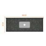 Essa pia de granito tem 1,00 m de comprimento, 55 cm de largura e conta com uma cuba de 46 cm de comprimento, 30 cm de largura e 11 cm de altura.