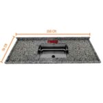 Essa pia de granito tem 1,50 m de comprimento, 56 cm de largura e conta com uma cuba de 46 cm de comprimento, 30 cm de largura e 11 cm de altura.