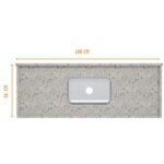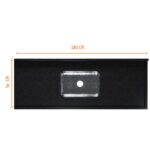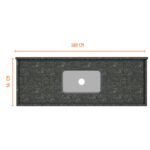 Essa pia de granito tem 1,80 m de comprimento, 56 cm de largura e conta com uma cuba n°2 de 56 cm de comprimento, 34 cm de largura e 11 cm de altura.