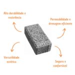 Sua estrutura drenante permite a infiltração direta da água no solo, enquanto o sistema intertravado garante durabilidade e reduz a necessidade de manutenção.